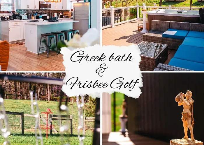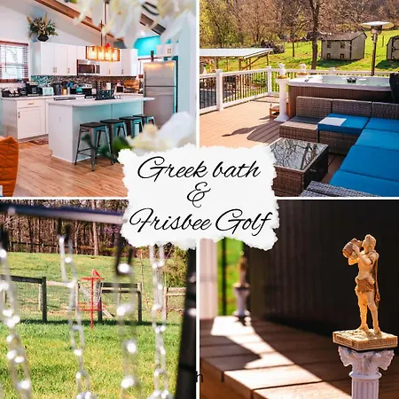 A patio here boasts the views of the mountain. Stonefire Pizza Oven Frisbee Golf And Pond Villa includes a bathroom with a hot tub.